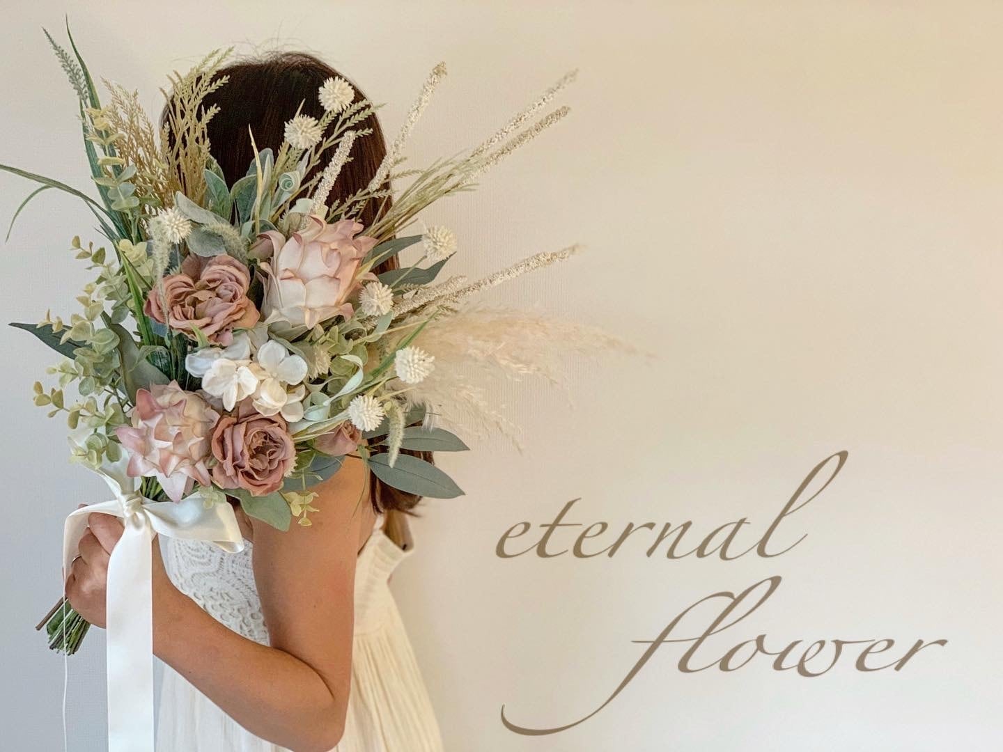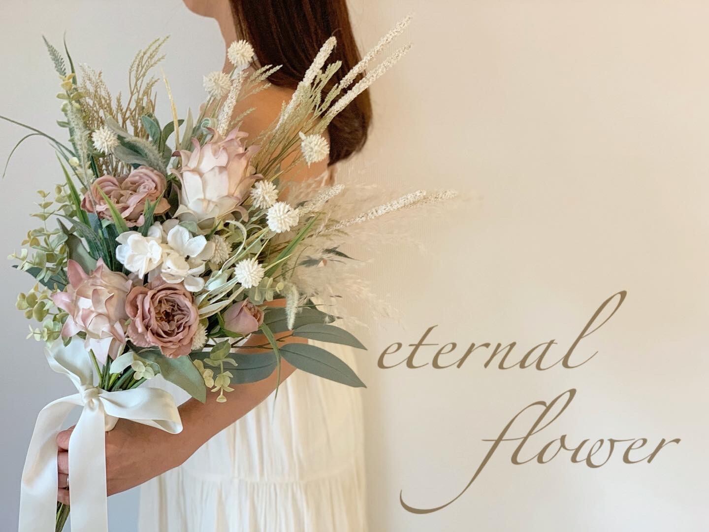 (アーティフィシャルフラワーを使用しているため、挙式後にも劣化することなくインテリアとしてもお使いいただけます)