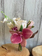 完成品ウェディングブーケ、ブートニア付き。